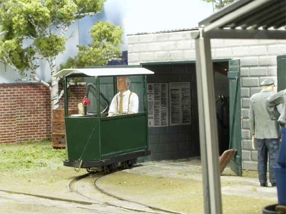 A view of the old locomotive by the workshop. The health and safety at work notices on the wall of the workshop are an important detail and were photocopied from a sign manufacturers catalogue.