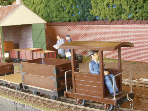 Close up of the Eaton Hall Brake van and a TOPS wagon. The wagon sides on the TOPS wagons can easily be removed. Just like the prototype