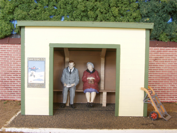 The station shelter. Nothing much hapenning at Whinny Lane then.The "Skegness is so bracing" poster is a very famous image in British Railway history.