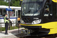 Swift Trams made by Bombardier Transport. Powered from an overhead